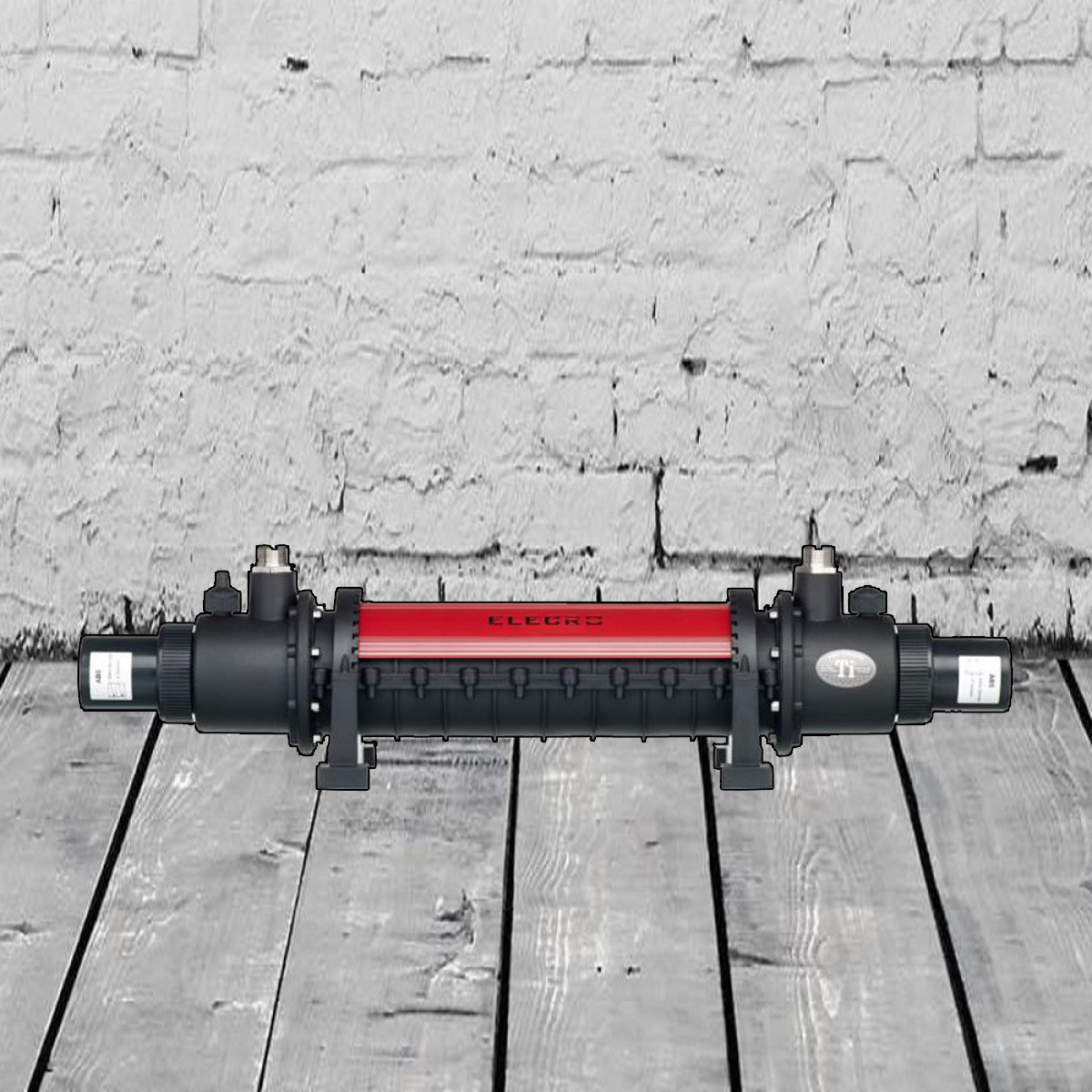 Основна деталь приладу – нагрівальний елемент, розміщений всередині теплообмінника, має форму спіралі. Однією з головних умов функціонування приладу є його підключення до системи фільтрації. Вода потрапляє до теплообмінника та контактує з прогрітою спіраллю, забирає теплову енергію. Цей процес і забезпечує прогрів води в басейні.