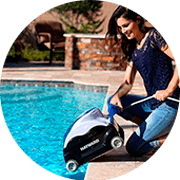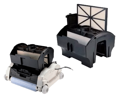 Пилосос комплектується зручним візком із коліщатками для зберігання й пересування до басейну. Також у наборі йде блок живлення/керування й докладна інструкція кількома мовами (російський входить). Пилосос легко використовувати, жодних додаткових шлангів, насосів не потрібно. Працює окремо від системи фільтрації басейну, знизивши частоту циклів зворотного промивання фільтра.